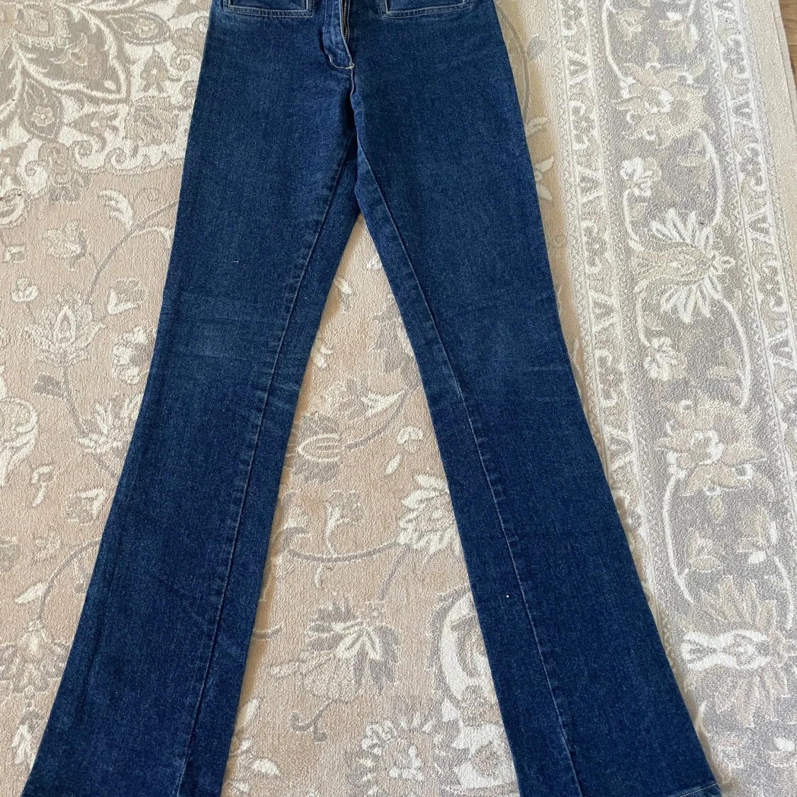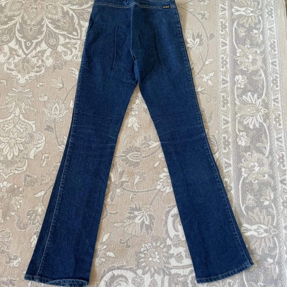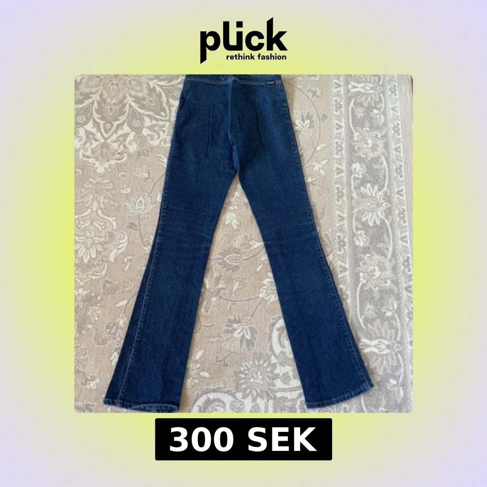 Snygga blå bootcut jeans från Gul & Blå i storlek S. Modellen är lågmidjad och har klassisk bootcut-passform med utsvängda ben. Materialet är 97% bomull och 3% lycra för lite stretch. Perfekta för dig som gillar retrovibe och cool siluett.