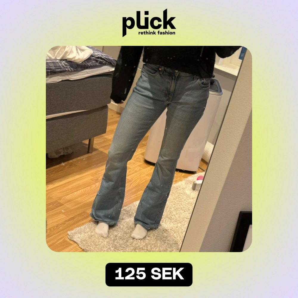 Mid-waist bootcut jeans som är jättesöta. Säljer pågrund av att jag ränsar ut min garderob och de kommer tyvärr inte till användning💕