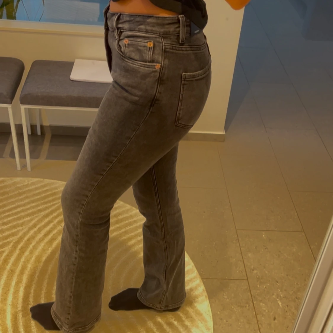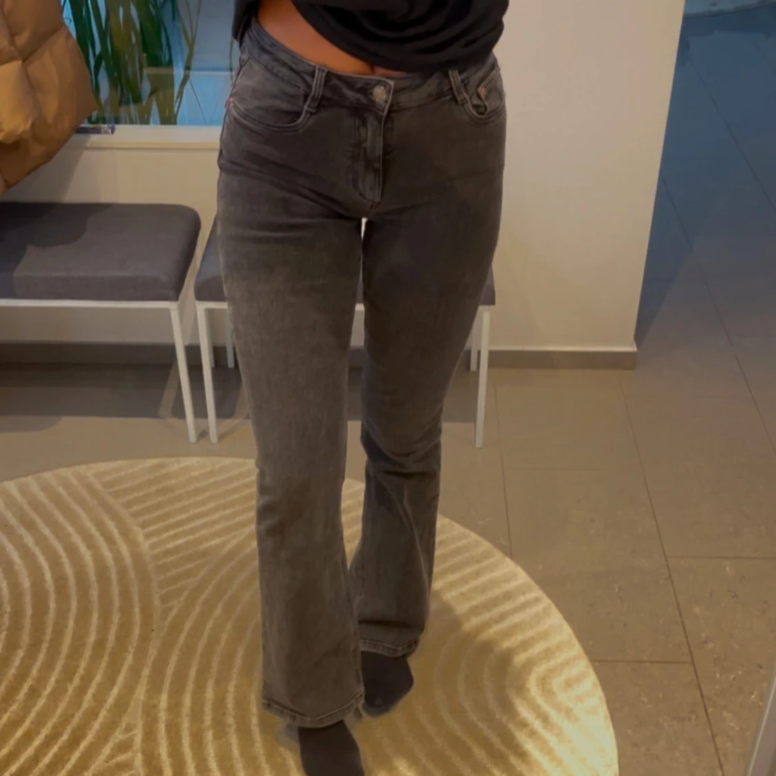 Snygga grå bootcut jeans med medel hög midja.