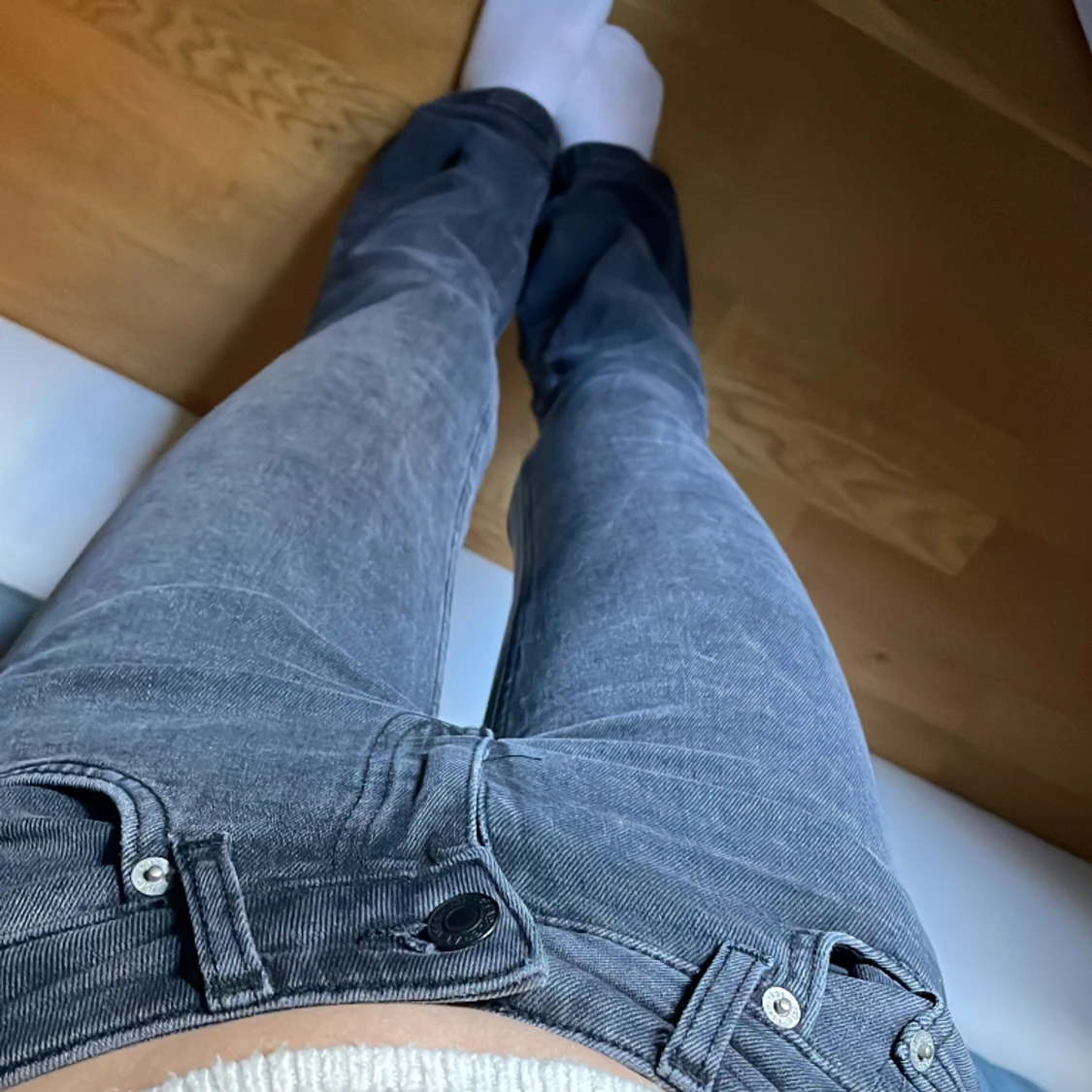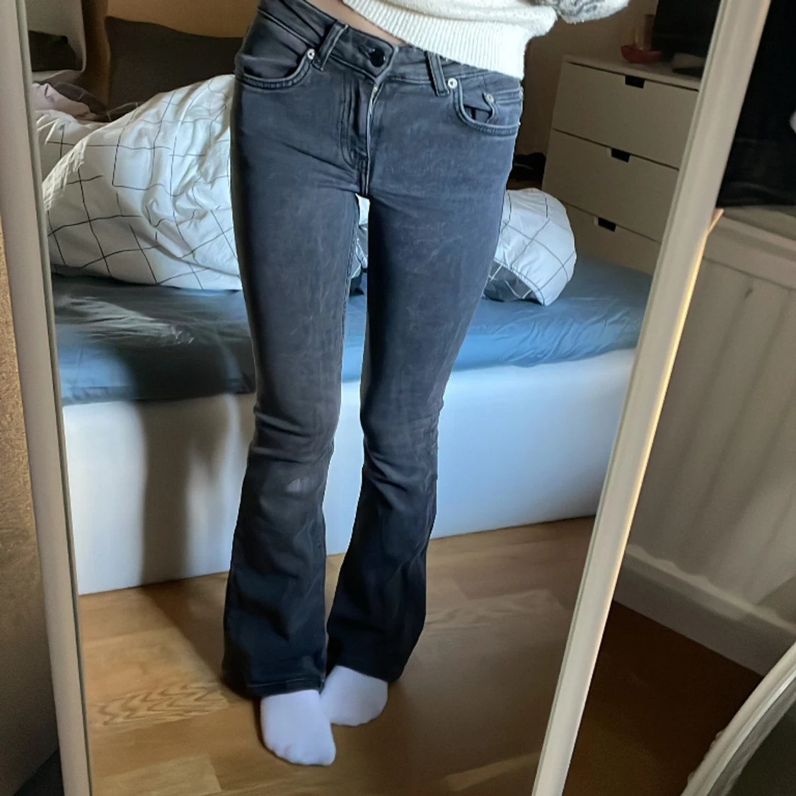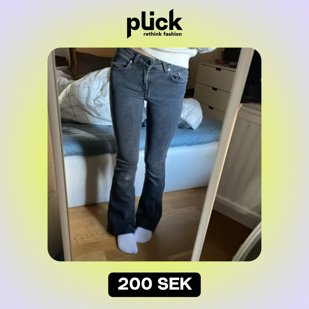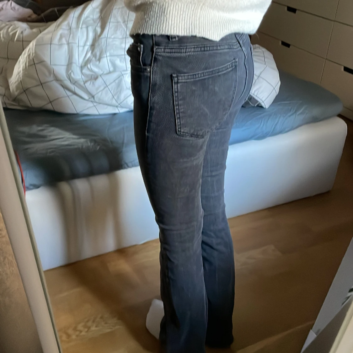 Lågmidjade mörkgrå jeans från lager i strl xxs (short) passar nån som är runt 160 💕 använda typ 3 gånger, nypris 400kr