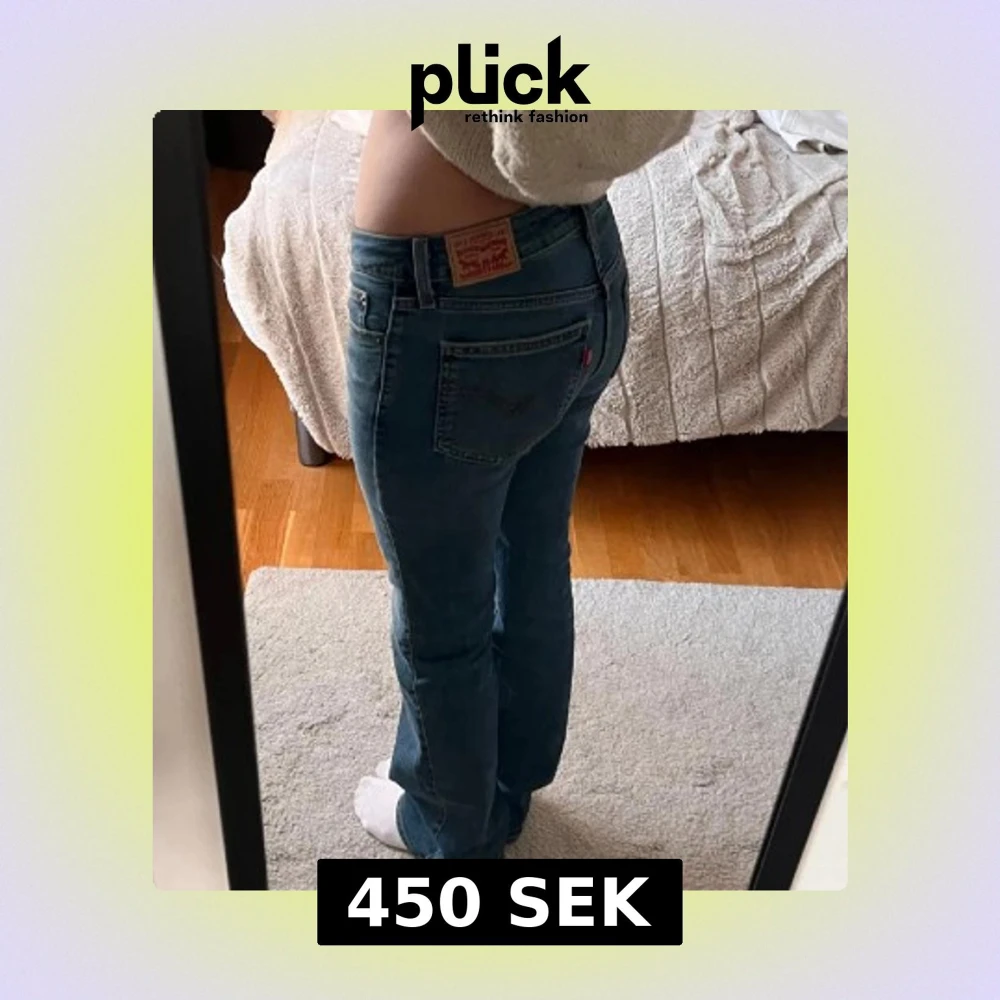 Säljer ett par klassiska Levi's 501 jeans i blå tvätt med bootcut passform. De har låg midja, raka ben med lätt utsvängning och typisk Levi's patch bak. Jeansen är gjorda i slitstarkt denim och har fem fickor samt dragkedja och knapp framtill.