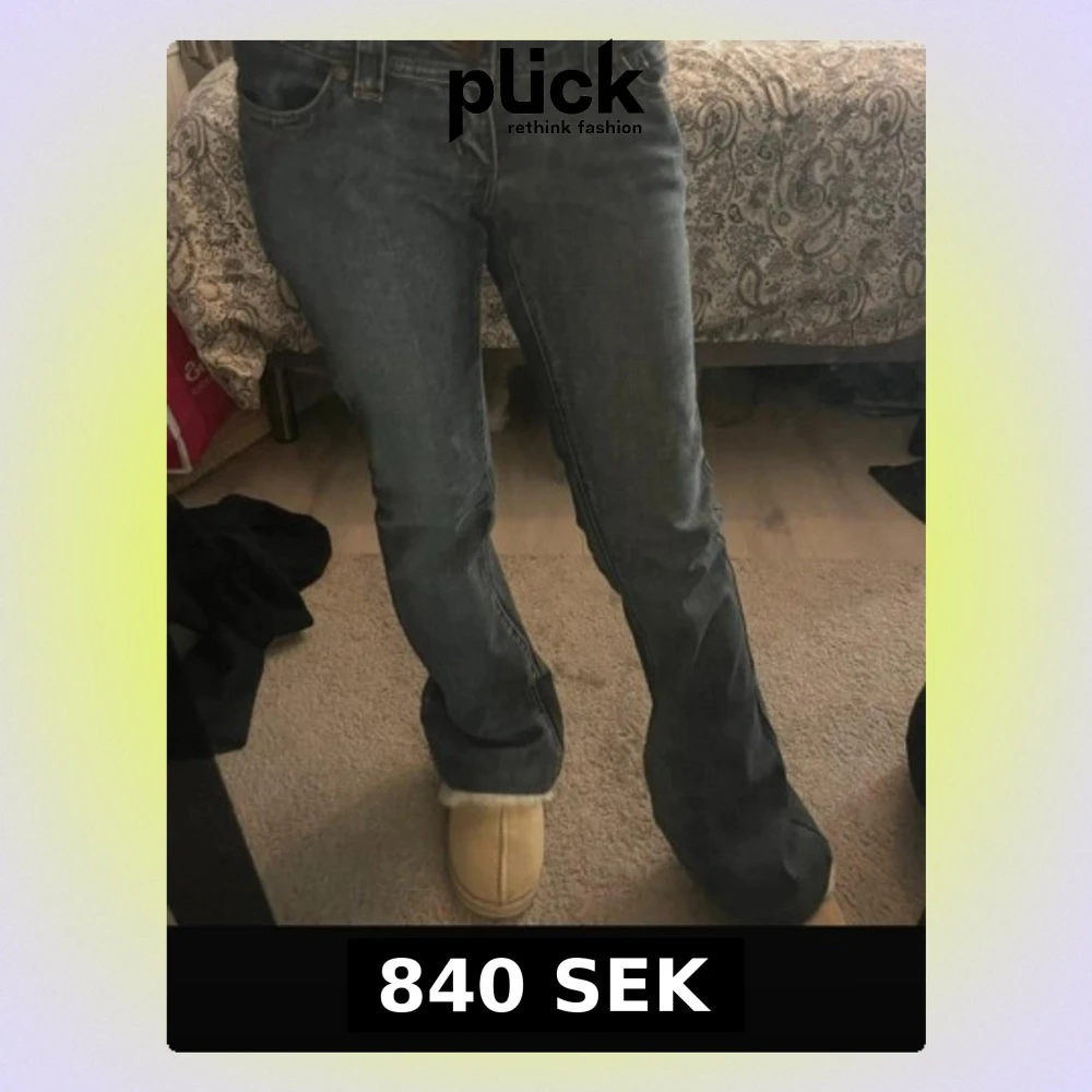 Säljer ett par blå jeans från Abrand med klassisk femficksdesign och snygga kontrastsömmar. Modellen har bootcut-ben och normal passform, vilket ger en chill och tidlös vibe. Jeansen är tillverkade i jeansmaterial och har hög midja. Perfekta för dig som gillar retrostil.