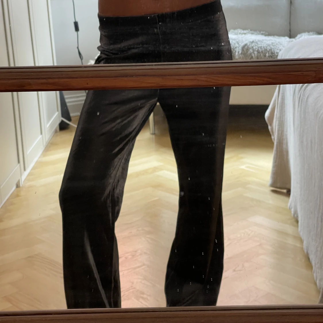 Lågmidjade glittriga byxor från Daisy Grace, helt osnvända.