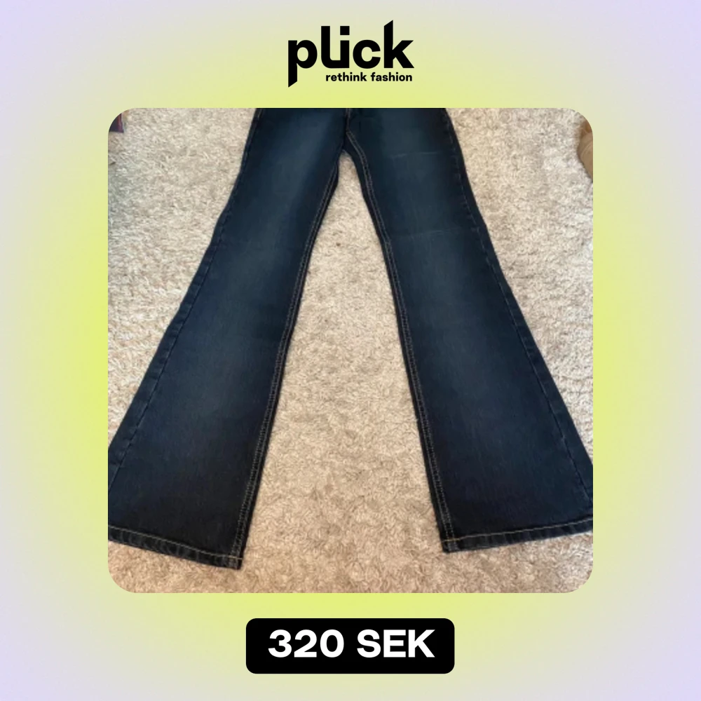 Utsvängda jeans ifrån Reactive. Storleken är W26 L34. Super fin mörkblå färg med coola fickor. Måtten: midja= 32 cm, Innerbenslängd= 84 cm