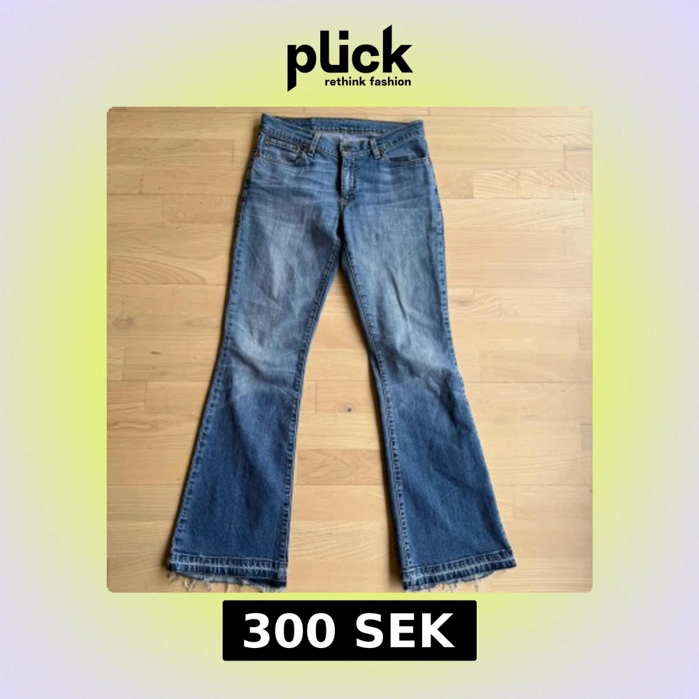 Säljer dessa skitsnygga vintage bootcut jeansen ifrån Levis (vet ej om de är äkta). Har sprättat upp jeansen längst ner då jag ville ha de lite längre, men inget man tänker på utan jag själv tycker det ger en ”cool” detalj! Passar storlek S men kan passa även M! Skriv om du har frågor 💗