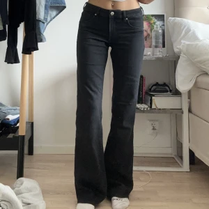 Lågmidjande jeans i svart! Köpte de från hm för 300kr och säljer nu för halva priset! Använd runt 5 gånger men finns inget fel med de!