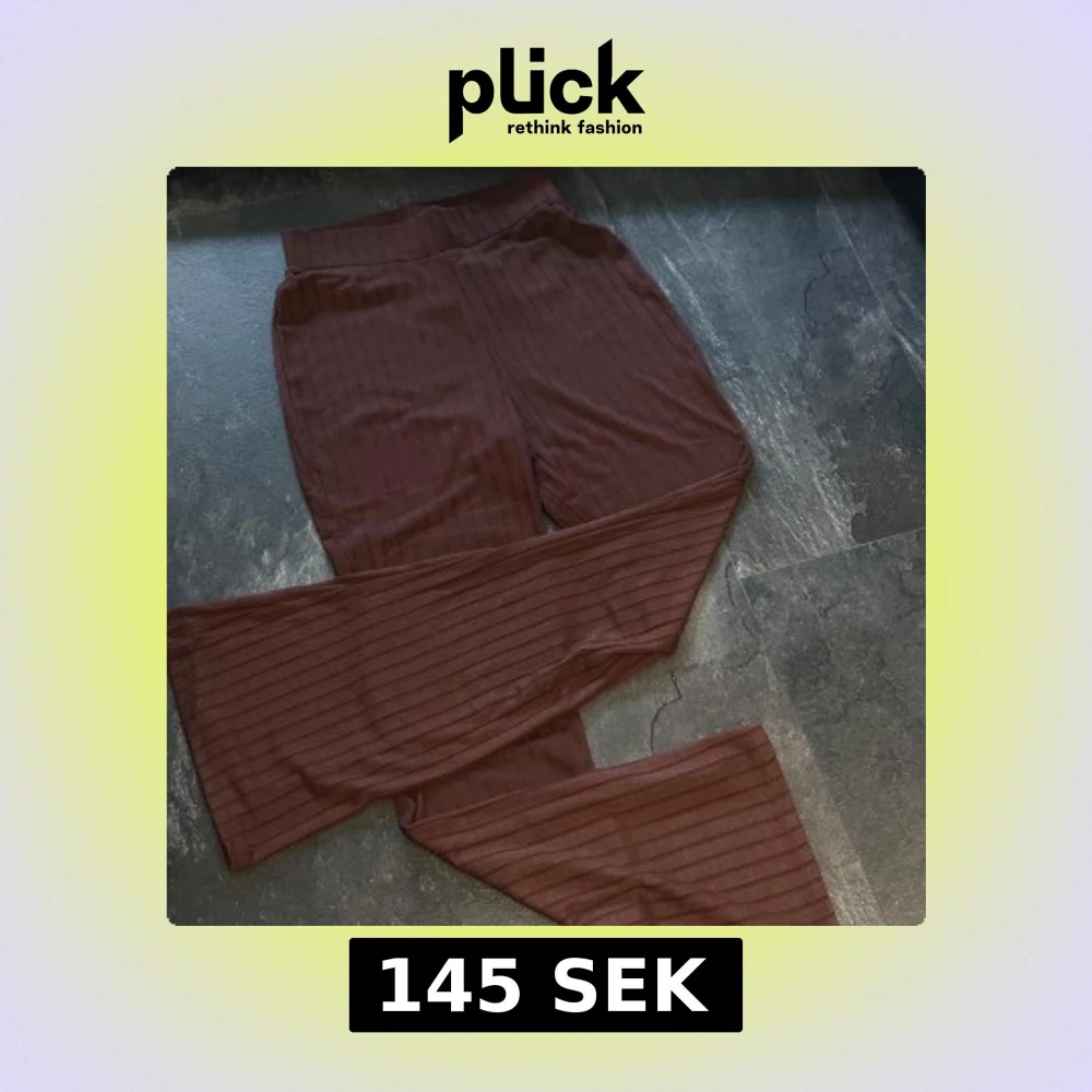 Mörkbruna ribbade byxor från Ellos med utsvängda ben och hög midja. Byxorna har en mjuk och stretchig känsla, perfekta för en avslappnad och trendig stil. Snygga att matcha med en enkel topp eller hoodie. Byxan är helt ny med prislapp kvar!
