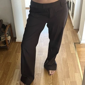 Bruna Kostymbyxor i bra kvalitet. Snygga att använda som oversize, vilket jag har gjort som är strl medium/38. Inköpta secondhand Superfint skick!