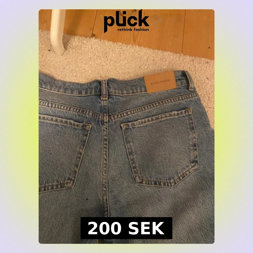 Skit Snygga blå jeans från Bubbleroom med baggy ben och klassisk femficksdesign. Jeansen har medel/ låg midja och råa, fransiga benslut för en trendig look. Tillverkade i klassiskt denimtyg som ger en avslappnad vibe.