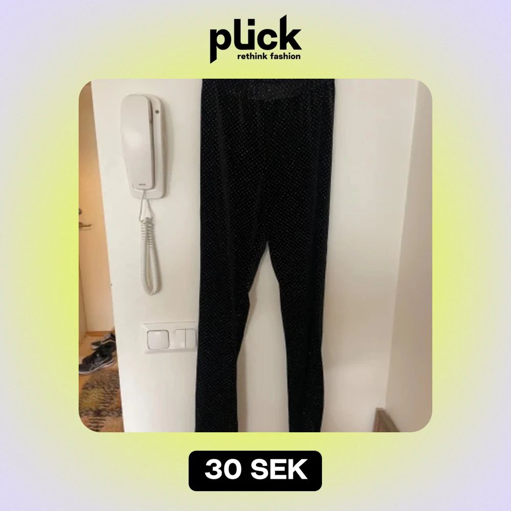 Ett par snygga svarta mjuka byxor med gulddetaljer, använd 3 ggr