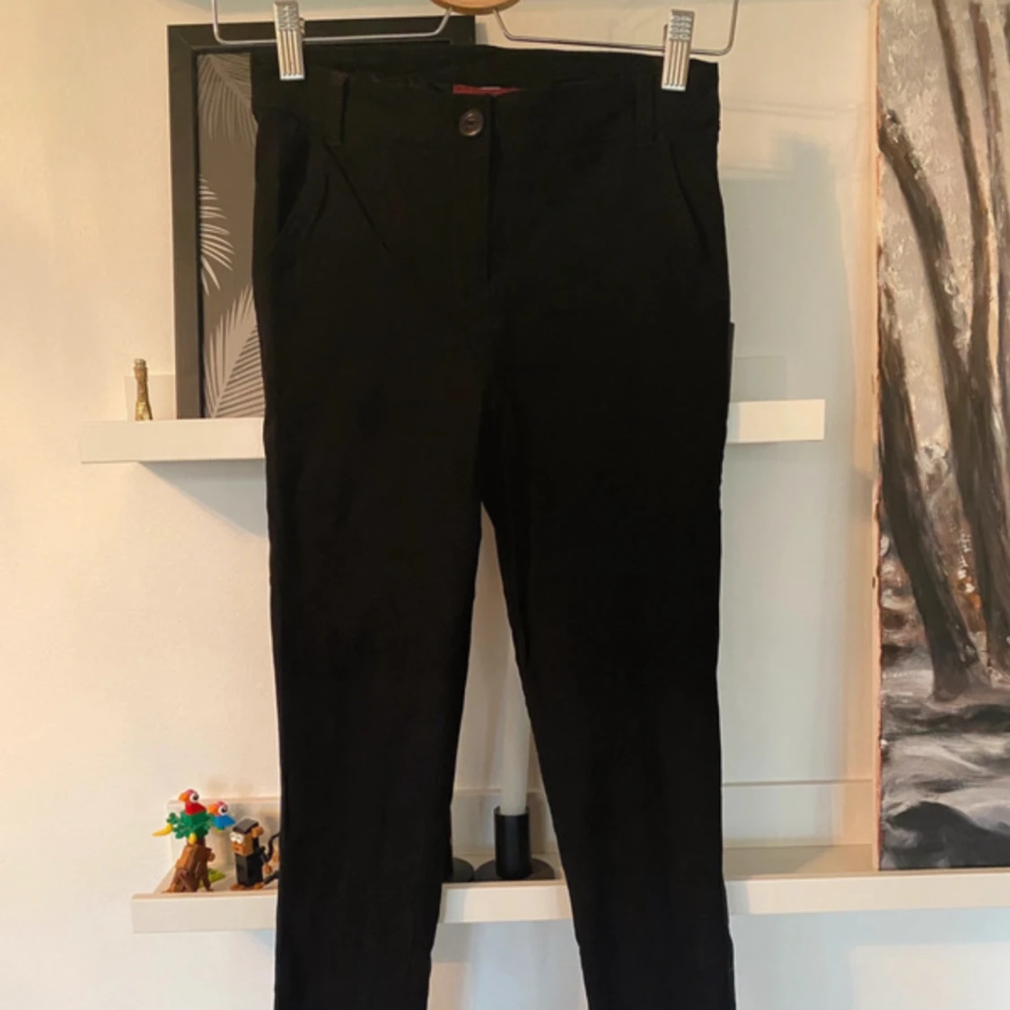 Svarta byxor, lite konstymliknande, en del strech Storlek Xs