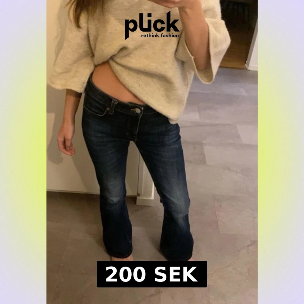Storlek: 24 (amerikansk storlek) XS. Den är i färgen mörkblå med en unik 2000s känsla. Längden passar jättebra för mig och jag är 160 cm. Dessa jeans är i jättebra skick och har använts ett par gånger. Jag har tagit väl hand om dem! Anledning till försäljning är att jag har börjat gilla andra modeller mer nu, men dessa jeans är verkligen snygga och passar till alla årstider. Den har stil.