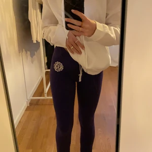 Fina mjukisbyxor o mörklila färg med vit snörning, strl 146/152 men passar mig som brukar ha M och är ca 160cm lång.