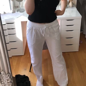 Säljer dessa slutsålda roxyliknande linnebyxorna! Var supernöjd med dessa, sen krympte de tyvärr i tvätten (linne gör ofta det). Bild 1 är före tvätt och bild 3 efter. Jag är 175 så dessa passar någon som är 160-170 beroende på hur man vill ha passformen💗