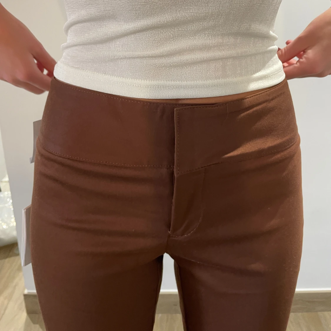 Bronze / bruna byxor från Sunday best, köpt på Aritzia, helt nya. Storlek xs/0. Är 164cm! Nypris ca. 1000kr