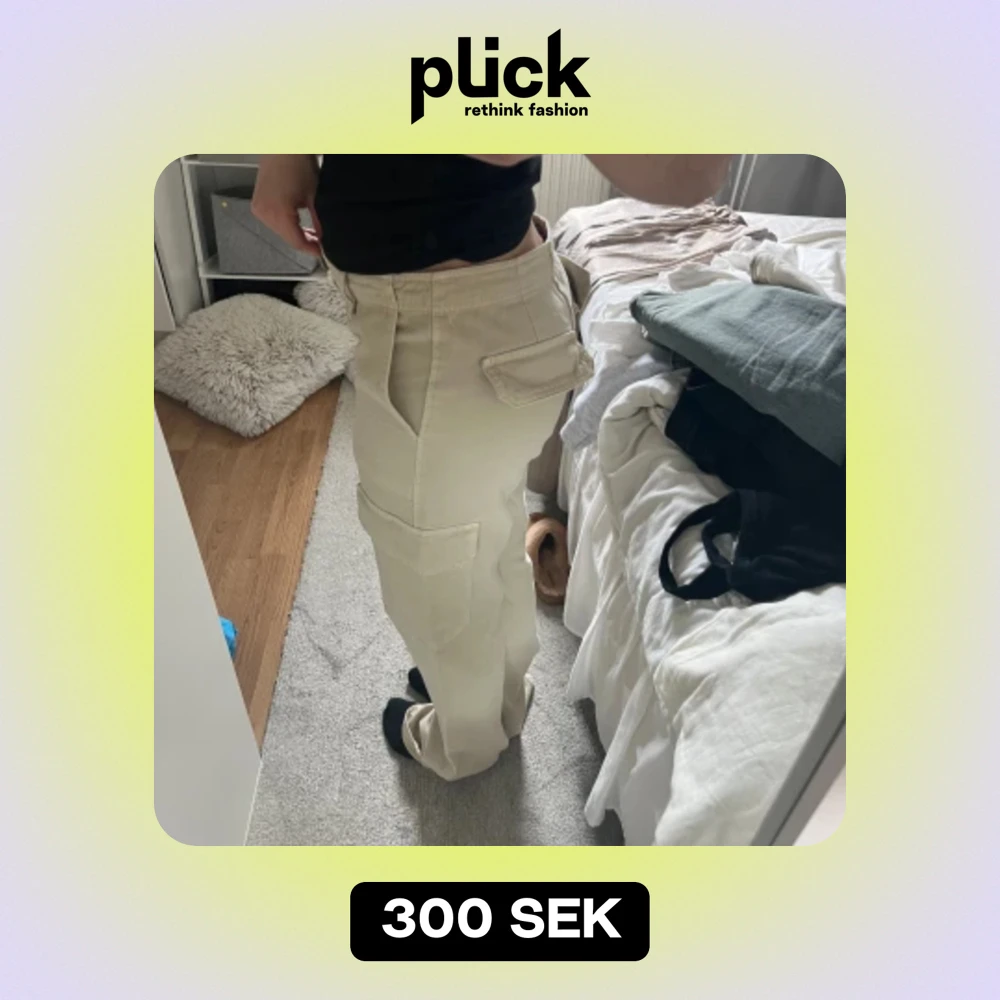 Beiga cargobyxor från Zara i storlek 34. Byxorna är i nyskick, endast använda 1-2 gånger. De är tyvärr lite små på mig, därav ingen bild framifrån när jag har på mig dem!! Hör av dig vid frågor/fler bilder.