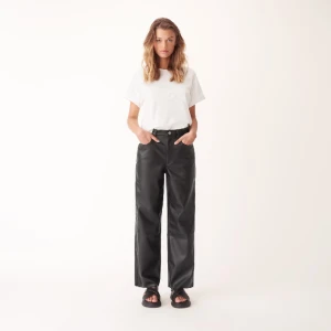 Carin Wester rak byxa i läderimitation storlek 40. Svart. Använd enbart fåtal gånger. Fint skick. Midjan är midwaist enligt info från tillverkare men skulle säga att den är mer mot highwaist. 100% polyuretan