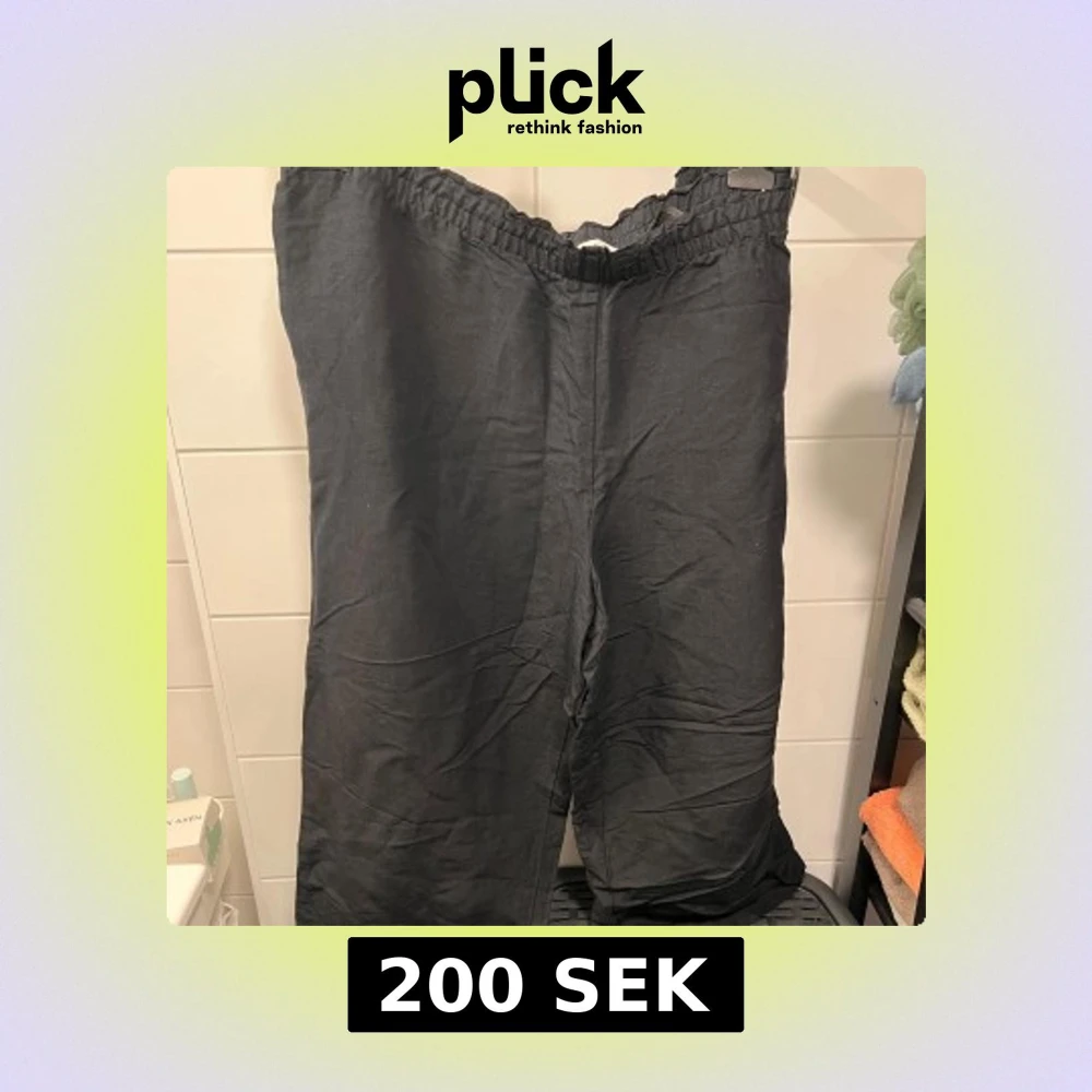 Säljer ett par svarta linnebyxor i storlek XXL. Byxorna har en elastisk midja för extra komfort och en avslappnad passform. Perfekta för en ledig stil.