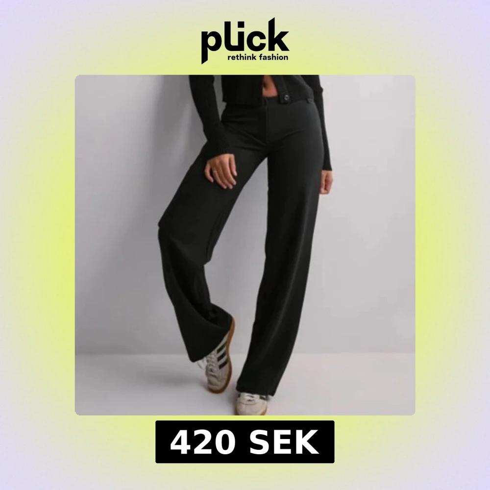 Snygga svarta kostymbyxor med låg midja och raka ben. Byxorna har klassisk knapp och dragkedja framtill samt bälteshällor. Perfekta för en clean och stilren look.