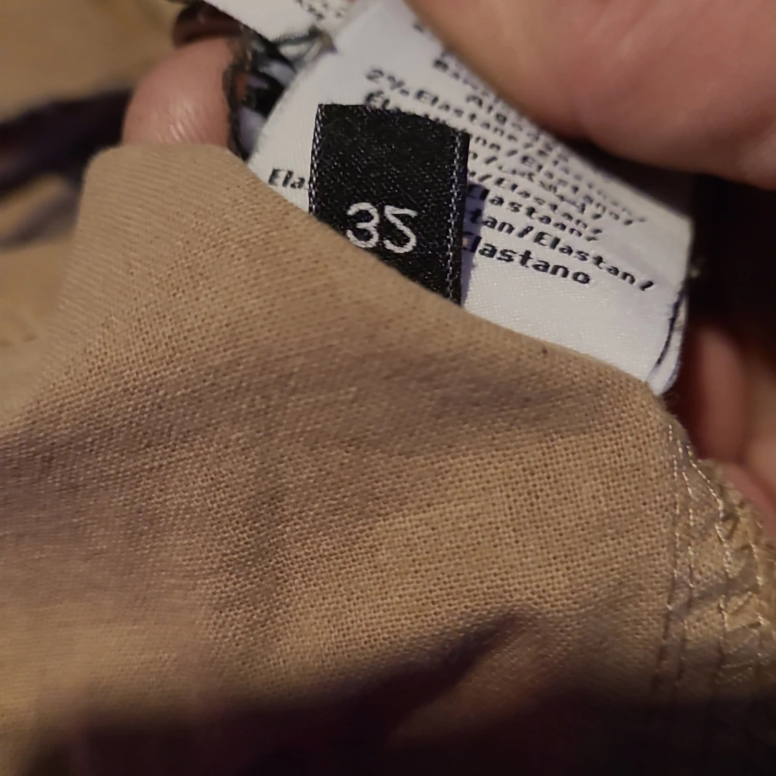 Super sköna byxor typ cargo chinos St 32 . Sitter bar på du som har 32. Som nya! rolig detaljer. Små svarta lappar med text .