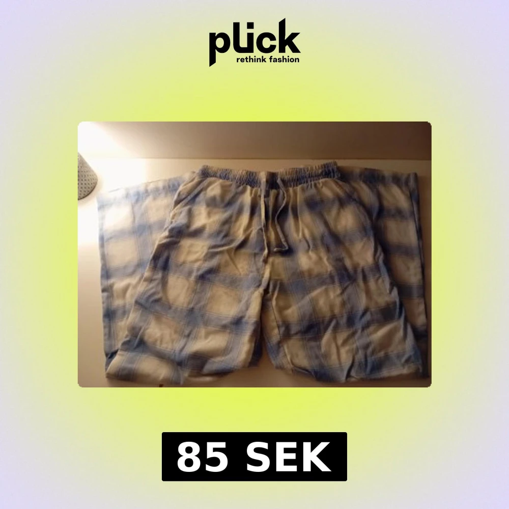 Säljer ett par chill rutiga shorts i blått och vitt med elastisk midja och snörning framtill. Perfekta för lata dagar hemma eller när du vill ha det bekvämt. Tillverkade i mjukt bomullstyg för extra komfort.