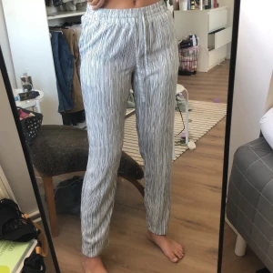 Säljer dessa svart och vit randiga byxor. Finns ingen lapp kvar men storlek 34/36 men passar båda. Säljer för 75 kr.