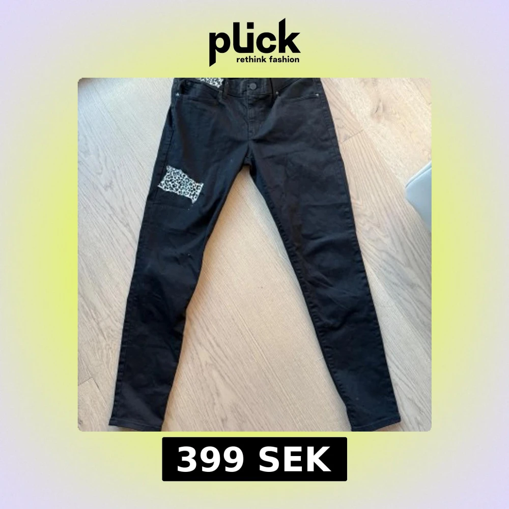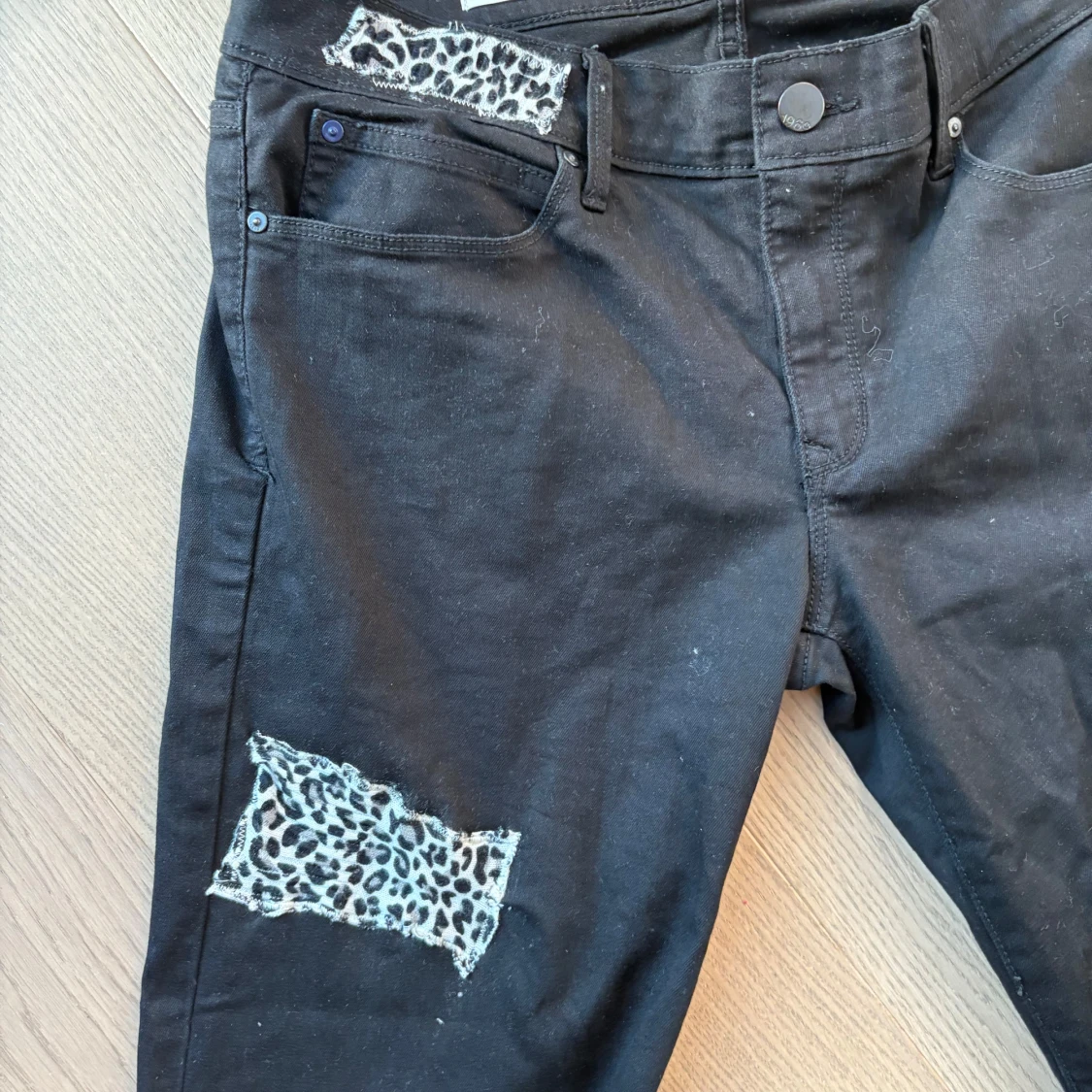 Svarta skinny jeans med coola leopardmönstrade patchar vid fickan och på låret. Jeansen har klassisk femficksdesign och smal passform. Perfekta för dig som vill sticka ut med en unik detalj i outfiten.