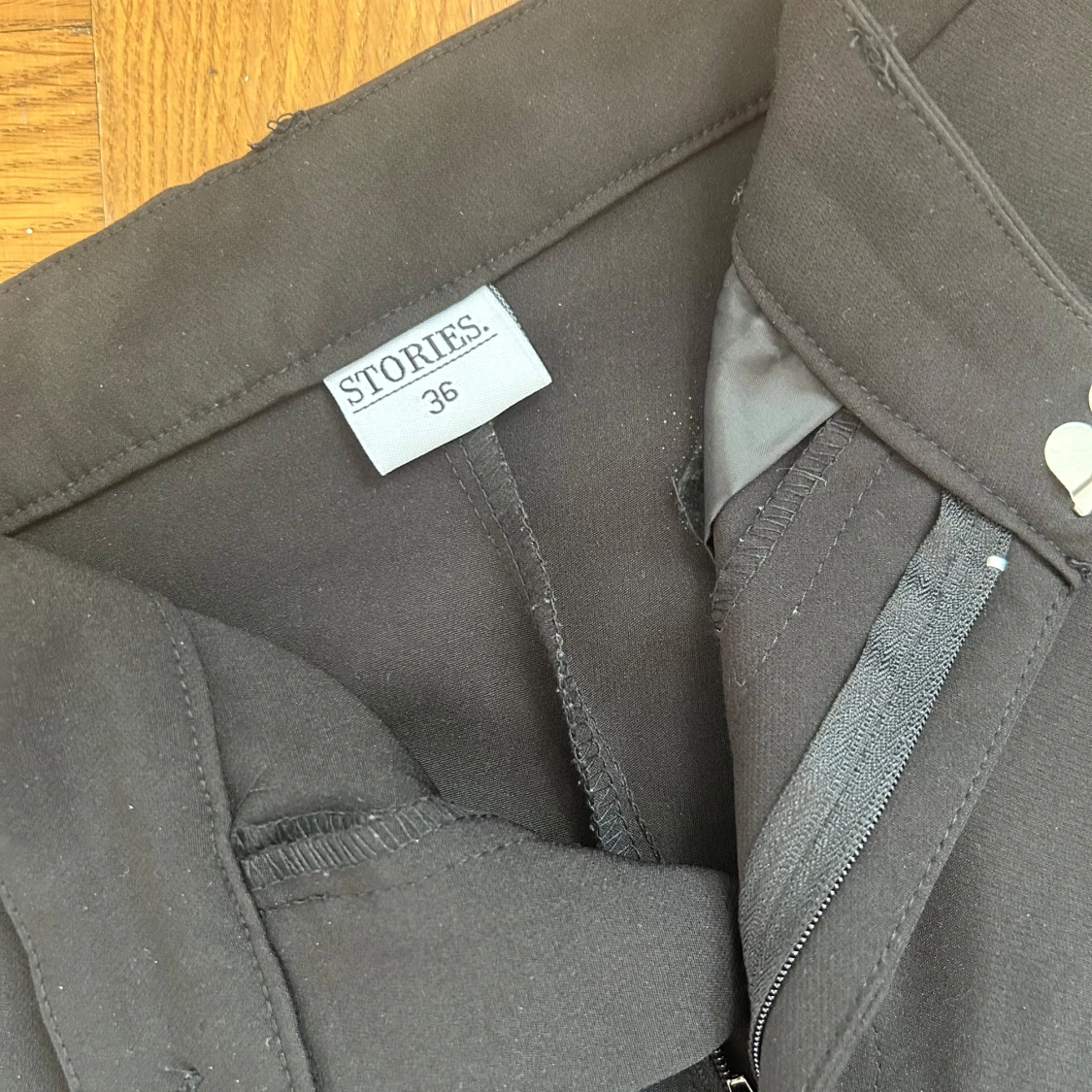 Säljer ett par svarta kostymbyxor med rak modell. Kommer tyvärr inte ihåg vart dom är ifrån✨