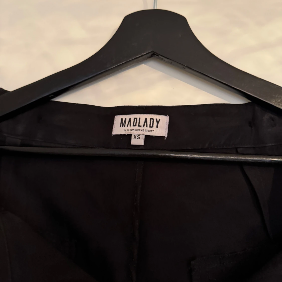 Snygga svarta byxor från Madlady i storlek XS. Byxorna har en klassisk design med rak passform och knappar i midjan. Perfekta för en stilren look.
