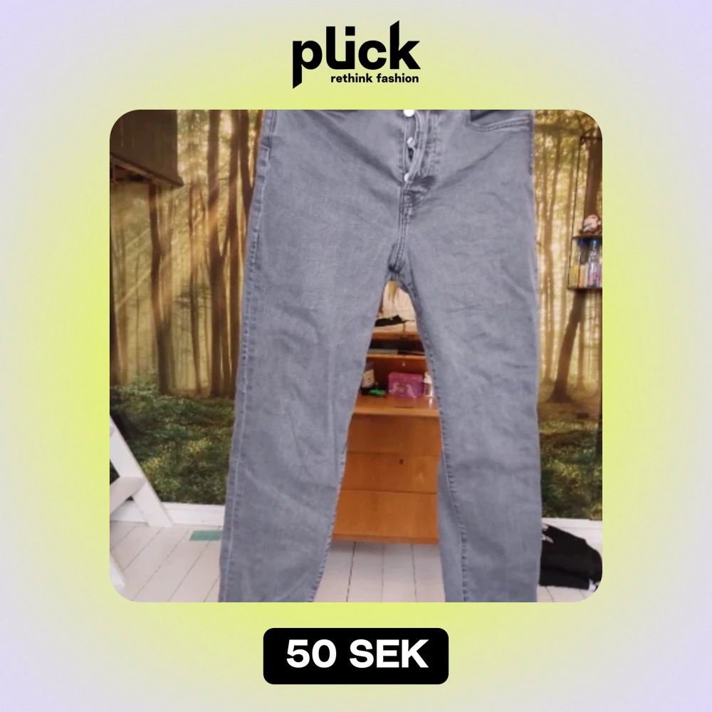 Stl. 38. Raka jeans med hög midja. Svarta i urtvättad effekt. Som nya förutom att lädermärket lossnat i ena hörnet.
