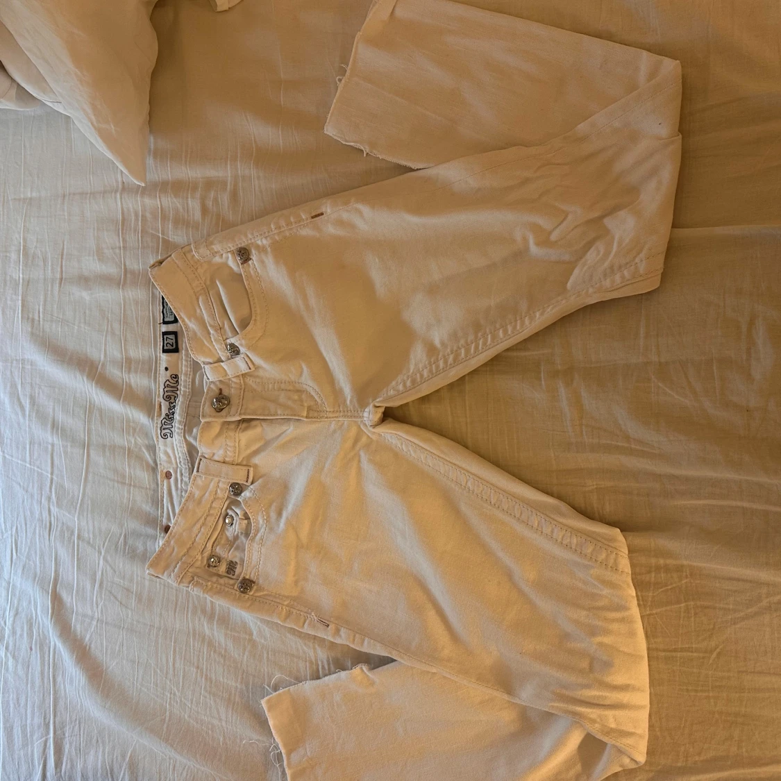 Säljer ett par lågmifjade vita miss me jeans som är lite skinny för att dom inte passar mig så bra