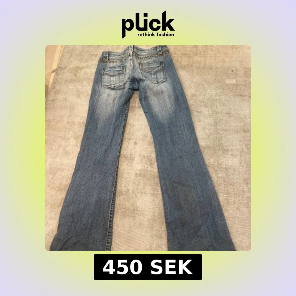 Jätte snygga lowwaist bootcut jeans med detaljer, midje storleken är 36 cm men psssar mig som är 34❤️ Innerbens längden är 83cm💕