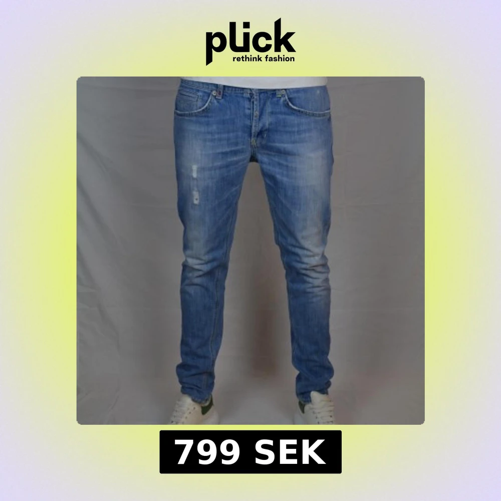 Feta blåa Dondup jeans med en slitning på höger lår. Jeansen är i modellen George, storlek 32 och är i väldigt gott skick, dvs har inga tecken på användning. Innerbensmått:78cm Midjemått:42cm Vid frågor eller funderingar är det bara att höra av sig, och kom ihåg, alltid 14 dagars ångerrätt hos oss på Revalo!