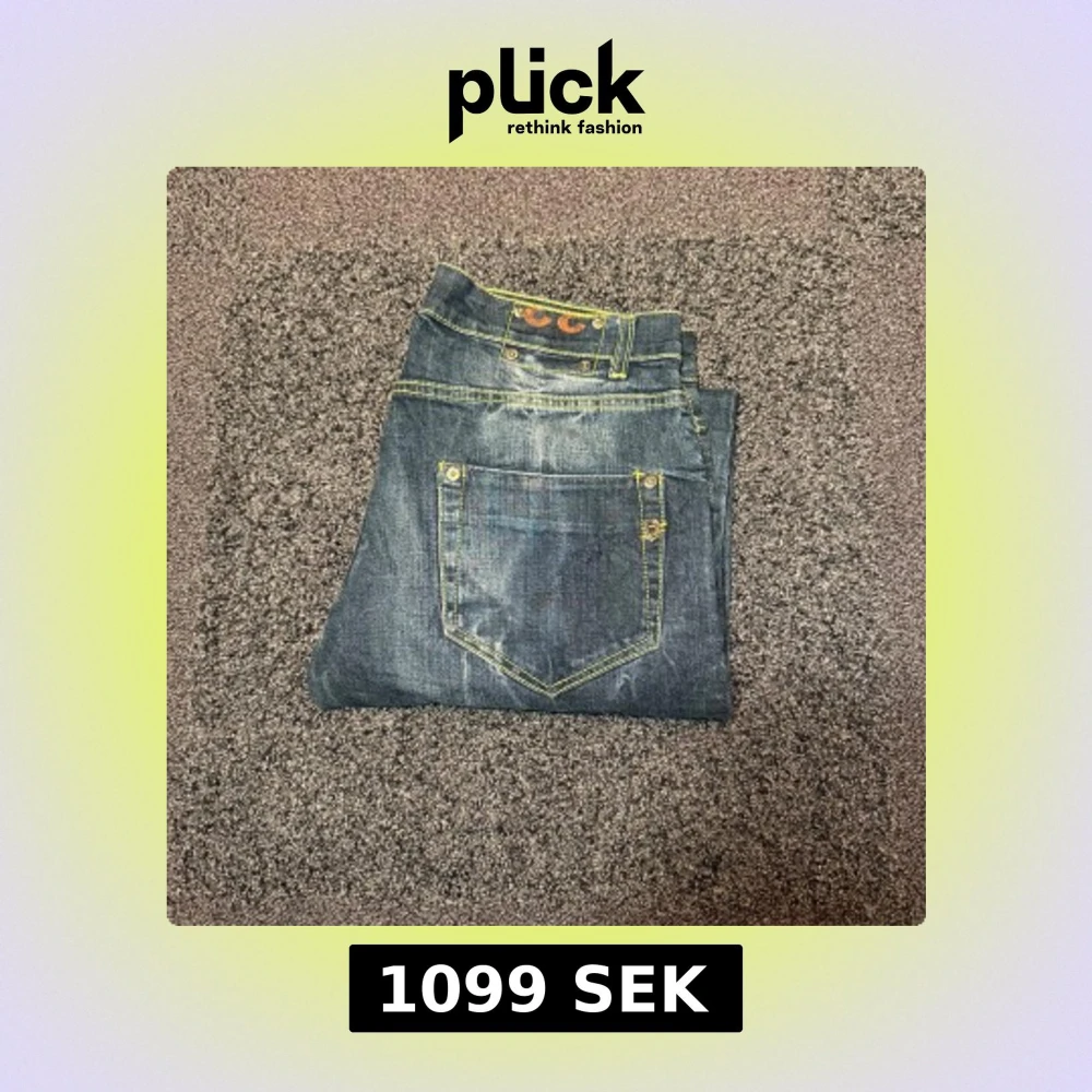 Versace jeans strass rhinestone  - Säljer ett par RARE blå jeans från Versace med låg midja. Baktill finns Versace-loggan i strass/rhinestone som glittrar ⭐️ Inköpta på Plick och bilderna är lånade från förra ägaren, men det är bara att skriva för fler bilder!! Dom passar mig som är ca 165 cm lång. Midjemåttet är ca 85, men det går att dra åt i och med snörning på insidan (bild 3)