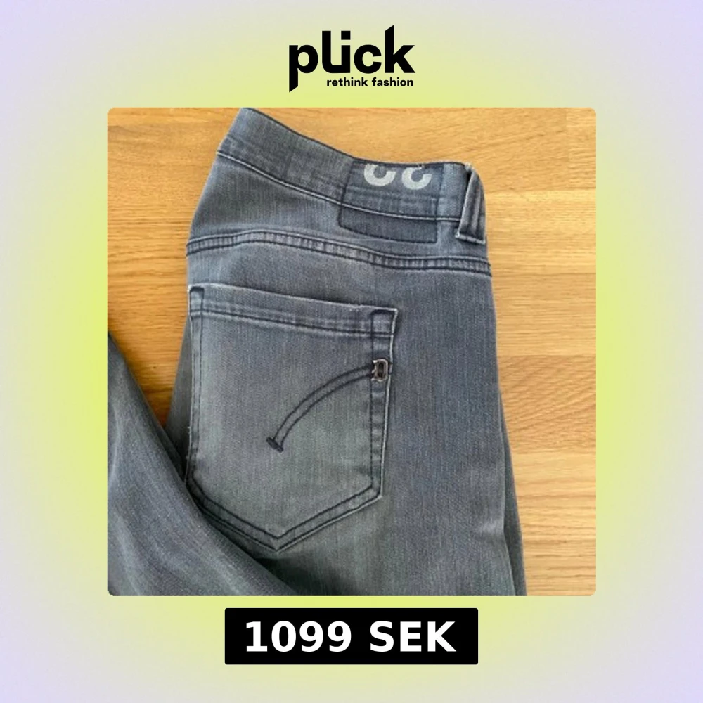 Gråa Dondup jeans i storlek 32 men passar även större. Mycket fint skick förutom en pytteliten lös tråd orsakad av katt och att en lapp inuti har flagnat. De är uppsydda i längd och bredd.