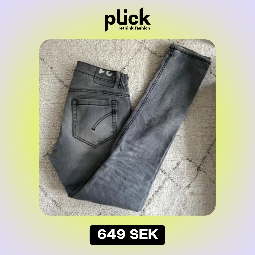 Gråa Dondup jeans modell George. Storlek 31 men sitter mer åt ~30 hållet. Har tidigare varit upplagda längst ner, vilket sedan sprättats upp igen (se sista bilden), men i övrigt mycket gott skick. Frågor/funderingar? Skriv!😁