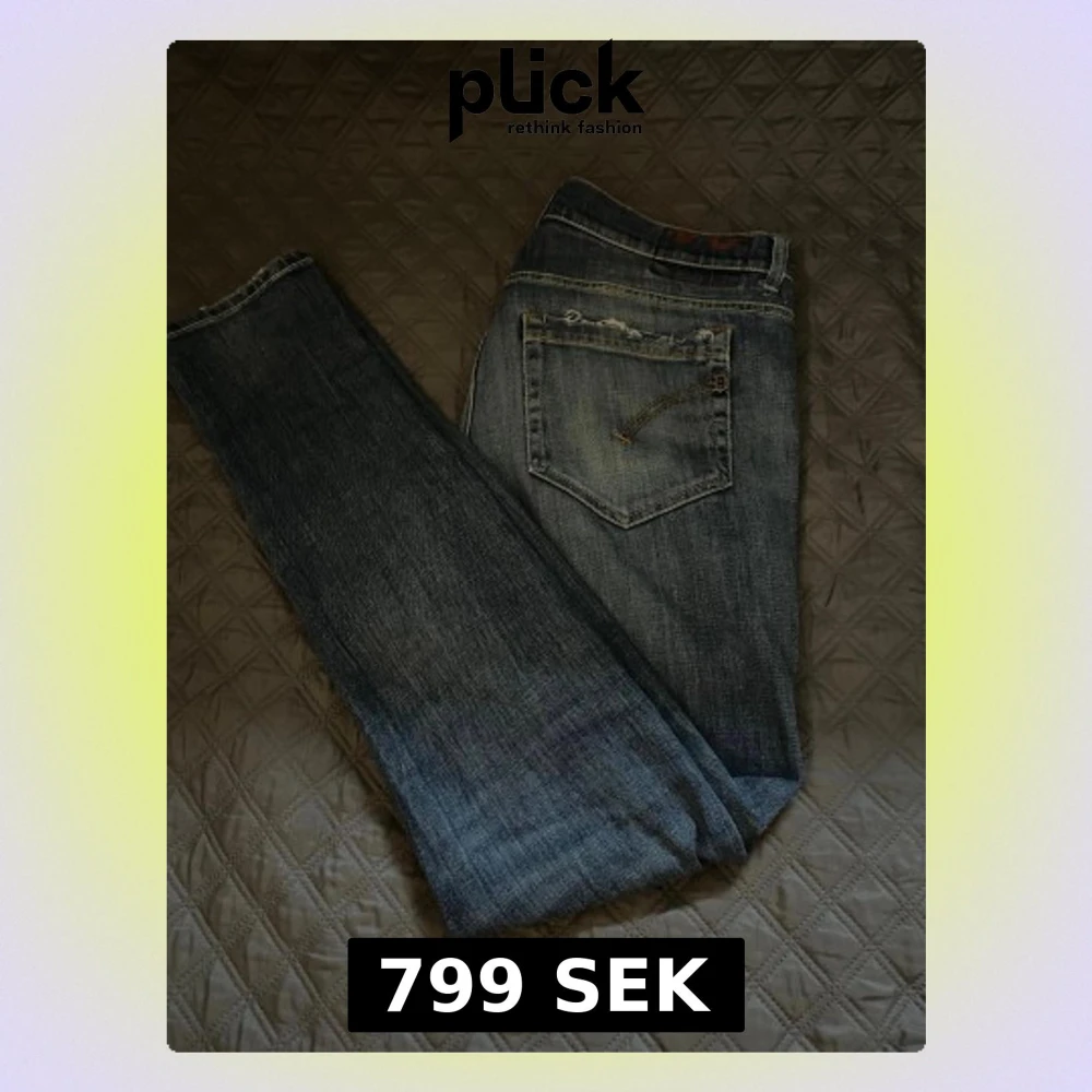 Säljer ett par klassiska blå jeans från Dondup i modellen GEORGE, med raka ben och snygga slitningar på bakfickorna. Priset är inte spikat, Jeansen har fem fickor, mörk tvätt som ger en cool vintagekänsla. Perfekta för dig som gillar en tidlös och avslappnad stil.