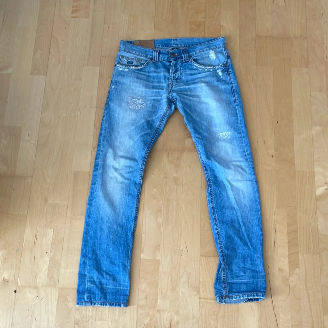 Säljer nu dessa sjukt snygga Dondup jeans med slitningar i modellen George🙌 Skicket är perfekt med många snygga detaljer! Storleken är W30 och de har en slim/straight passform🤩 Inga andra jeans är som dessa då slitningarna är gjorda ”custom made” av en textilkonstnär🤝 De är även tailored och gjorde för perfekt passform! Skriv om du har funderingar💬📱