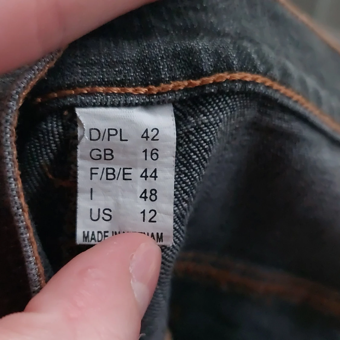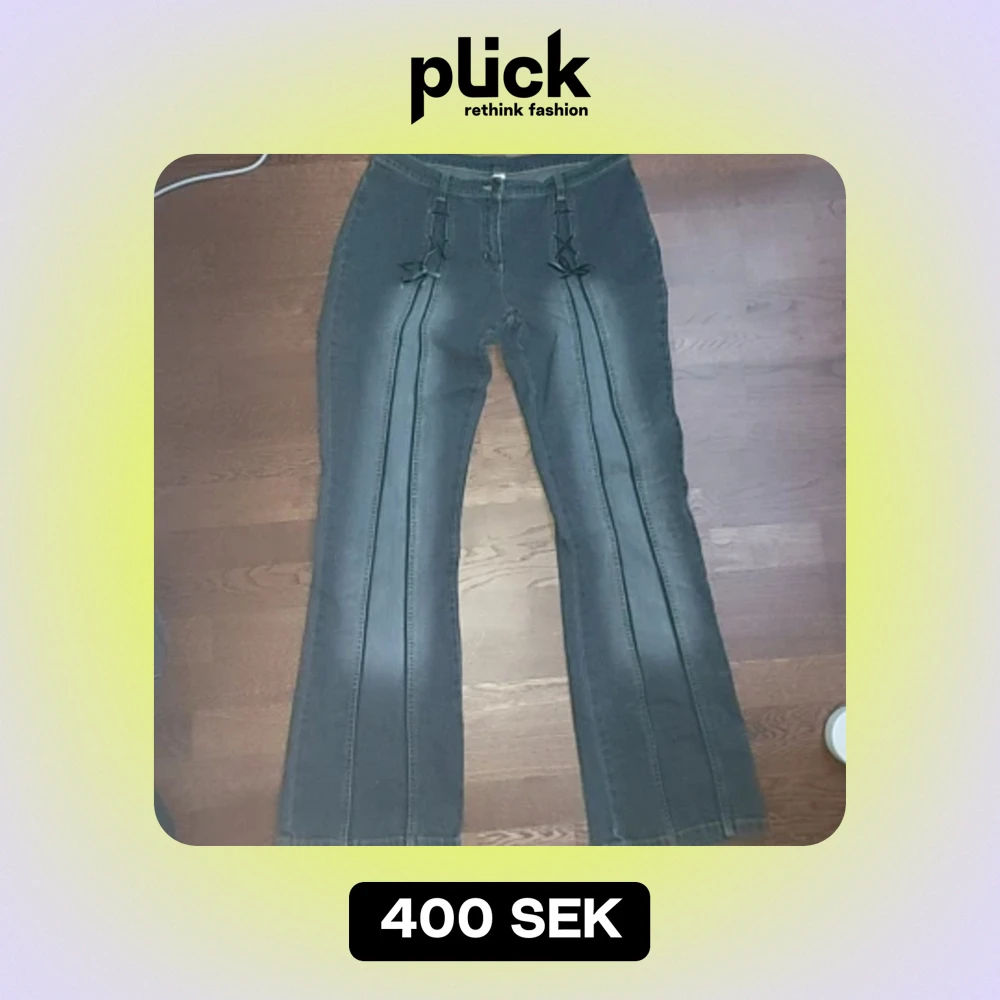 Gråa mörktvätt flared jeans med rkt fet stitching detalj på framsidan💯 Pris kan diskuteras👍🏻👍🏻 Kom dm för mått och sånt🙏🙏