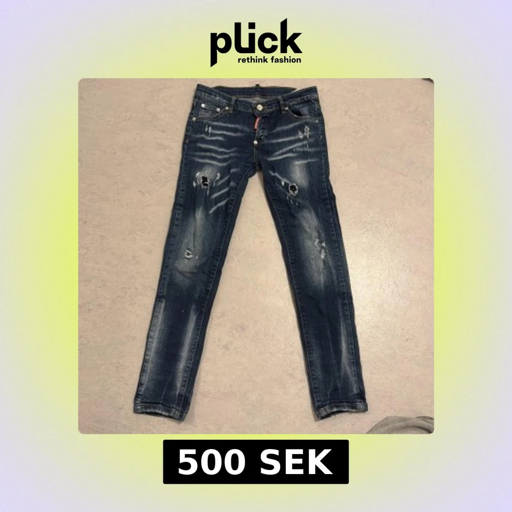 Snygga blå jeans från Dsquared2 med slitningar och hål på benen för en edgy look. Jeansen har skinny passform, klassisk femficksdesign och tydliga slitdetaljer framtill och baktill. Perfekta för dig som gillar streetstyle och vill sticka ut.