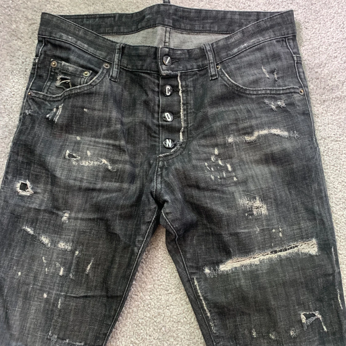 Säljer mina svarta Dsquared2 Skater Leather Patch Jeans. Storlek 48 IT i väldigt bra skick, inga skador/slitningar som inte dsquared2 gjort själva! Mer bilder/info finns i DM! Pris ej hugget i sten.