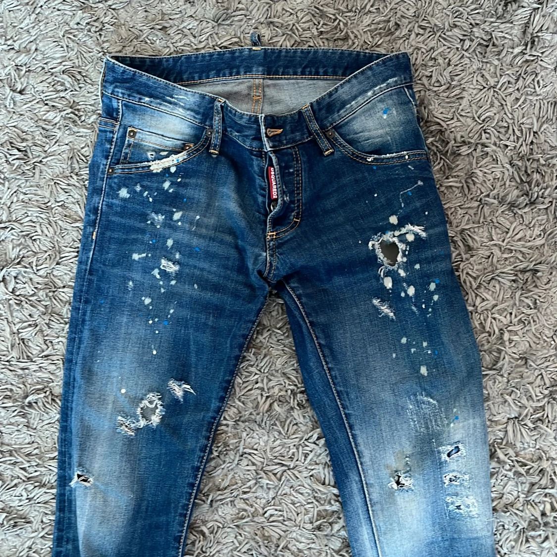 Snygga blå jeans från DSQUARED2 med slitna detaljer och en cool, distressed look. De har en klassisk femficksdesign och en knappgylf. Perfekta för en avslappnad stil med en touch av edge.
