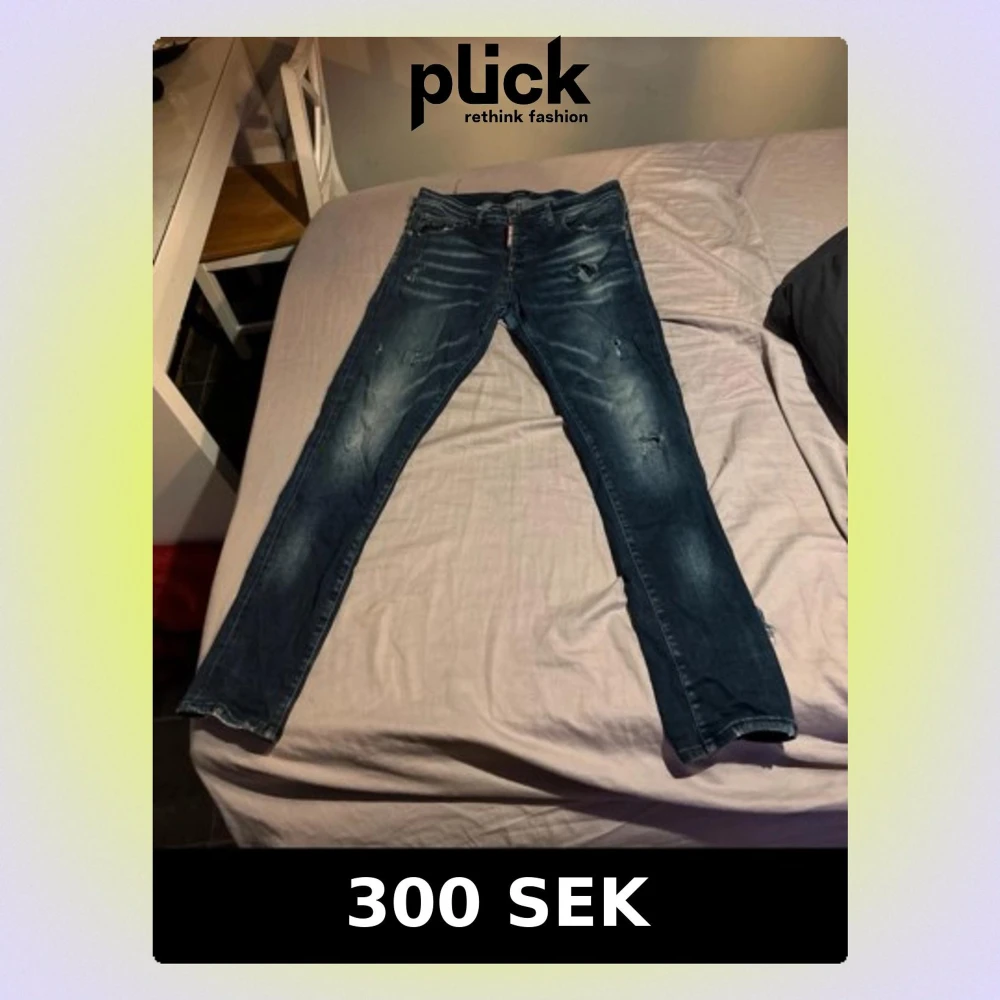 Snygga blå jeans från Dsquared2 med coola slitningar och tvättade detaljer. Modellen har en smal passform och klassisk femficksdesign. Perfekta för dig som gillar streetstyle och vill ha ett par jeans med attityd. Materialet är jeans och färgen är mörkblå.