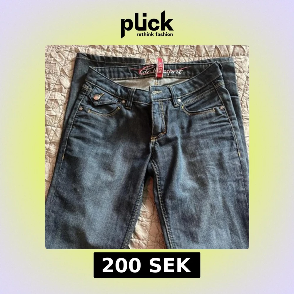 Byxorna är från e-sprit i stoleken 28 i midjan men passar nån som är 25 i midjan då man kan dra ner de till lågmidjade. jag säljer dom för att dom är lite för långa för mig (jag e 165) dom är raka och lågmidjade med unika detaljer!