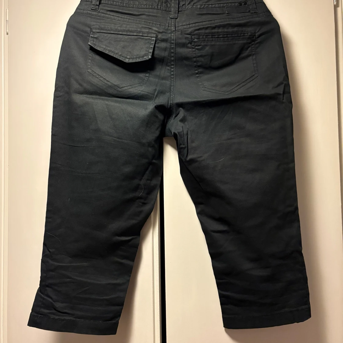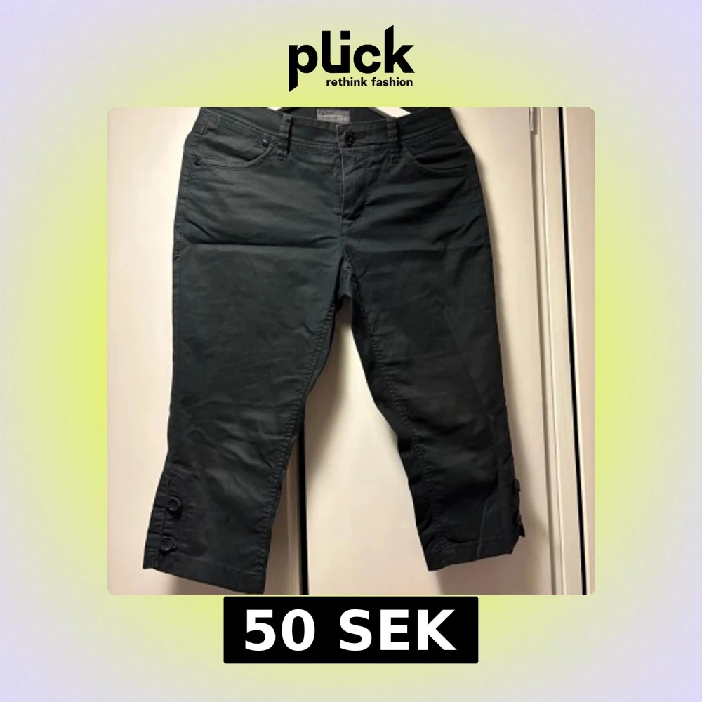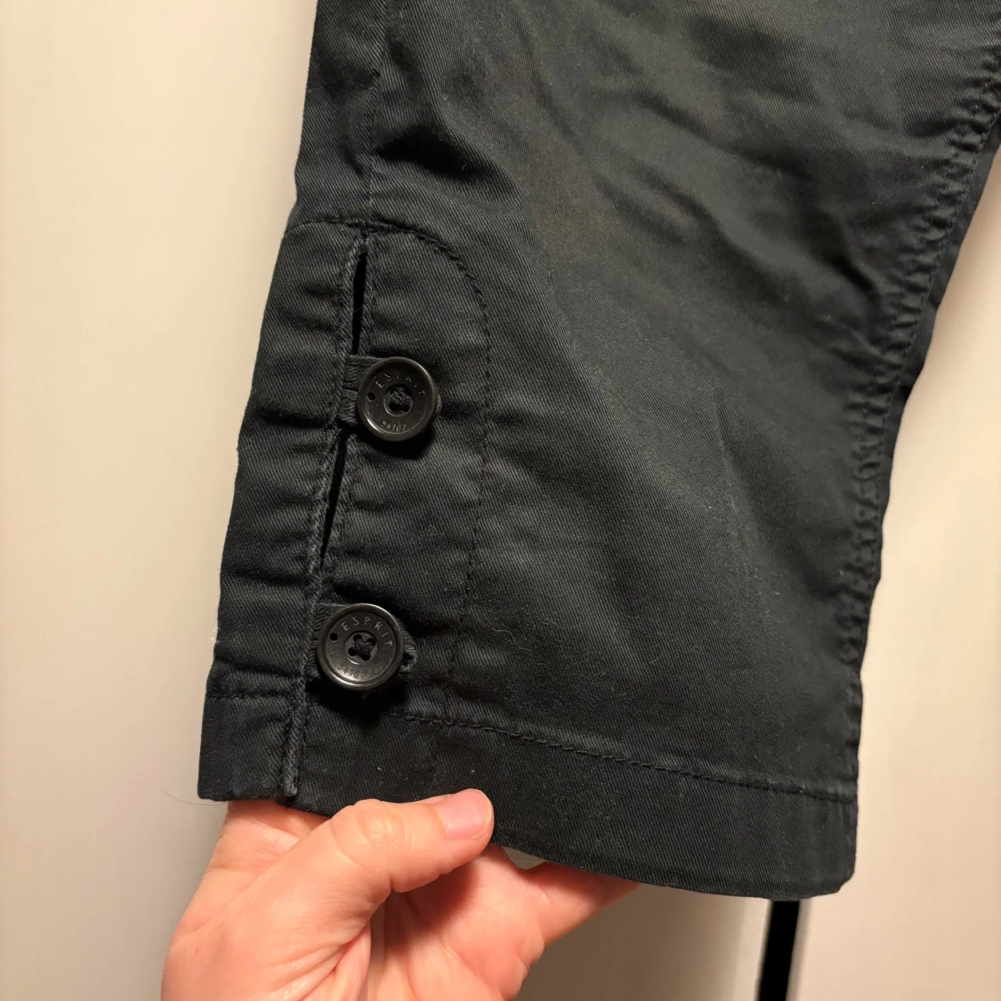 Svarta trekvartsbyxor från Esprit med normal passform. Byxorna har knappar som detalj vid bensluten och klassisk femficksdesign. Perfekta för dig som vill ha en stilren och enkel look med lite kortare ben.