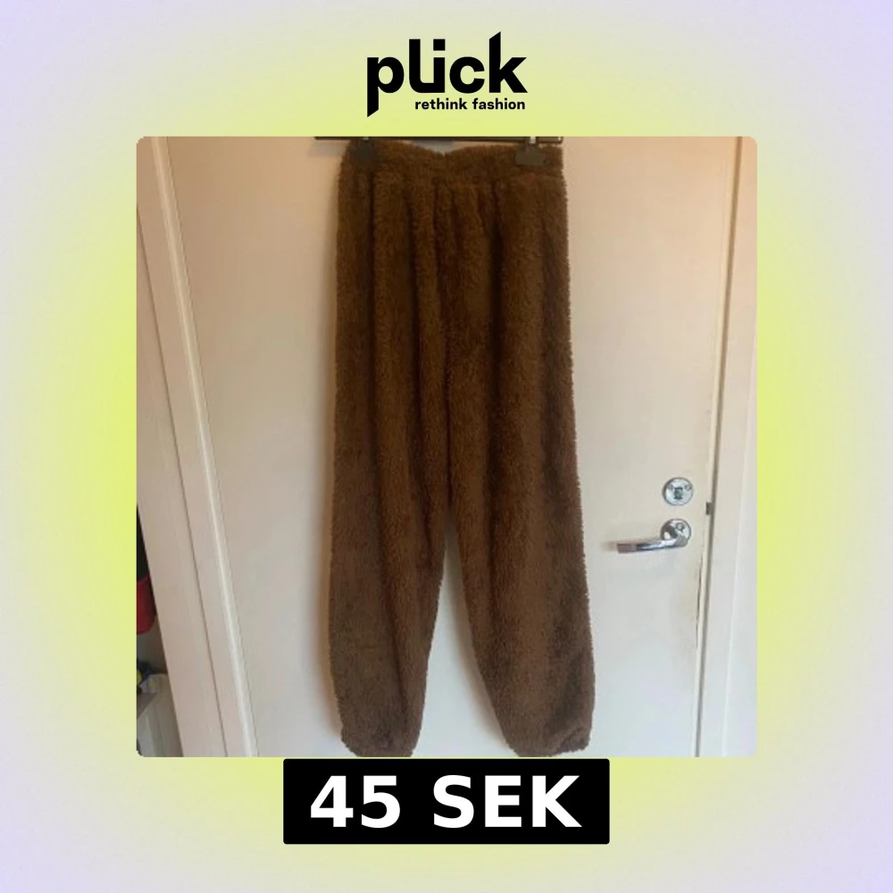 Supermysiga bruna mjukisbyxor med fluffig yta och avslappnad passform. Perfekta för chill hemma eller när du vill vara extra bekväm. Resår i midjan och vid bensluten för skön känsla. Materialet är fleece som känns mjukt mot huden.