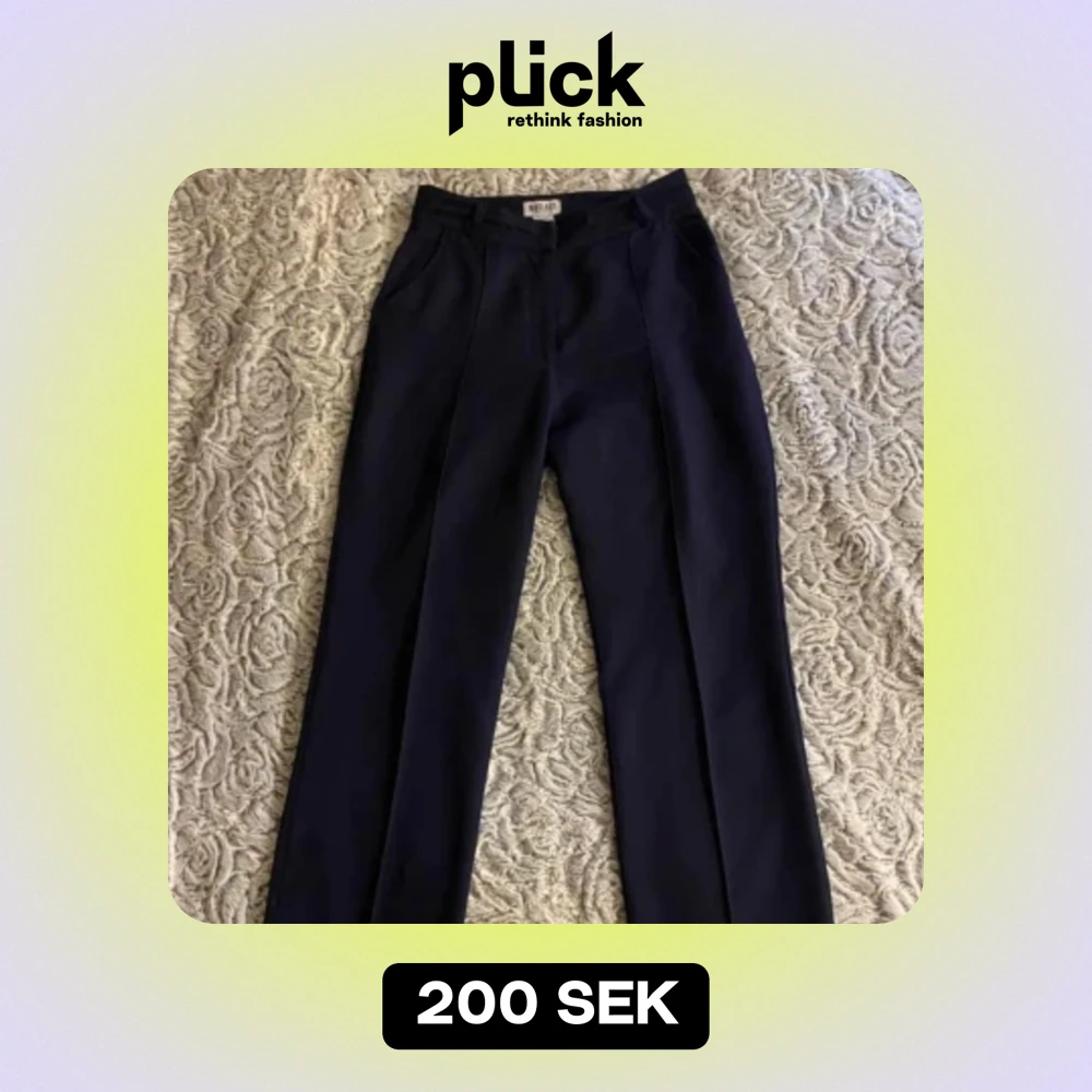 Blåa kostymbyxor från Madlady Lite noppiga runt fickorna, lite bak och lite fram samt att de är lite nötta mellan benen men inget man stör sig på särskilt mycket!! Våga skriva ifall du vill ha mer bilder!!! Nypris 599kr