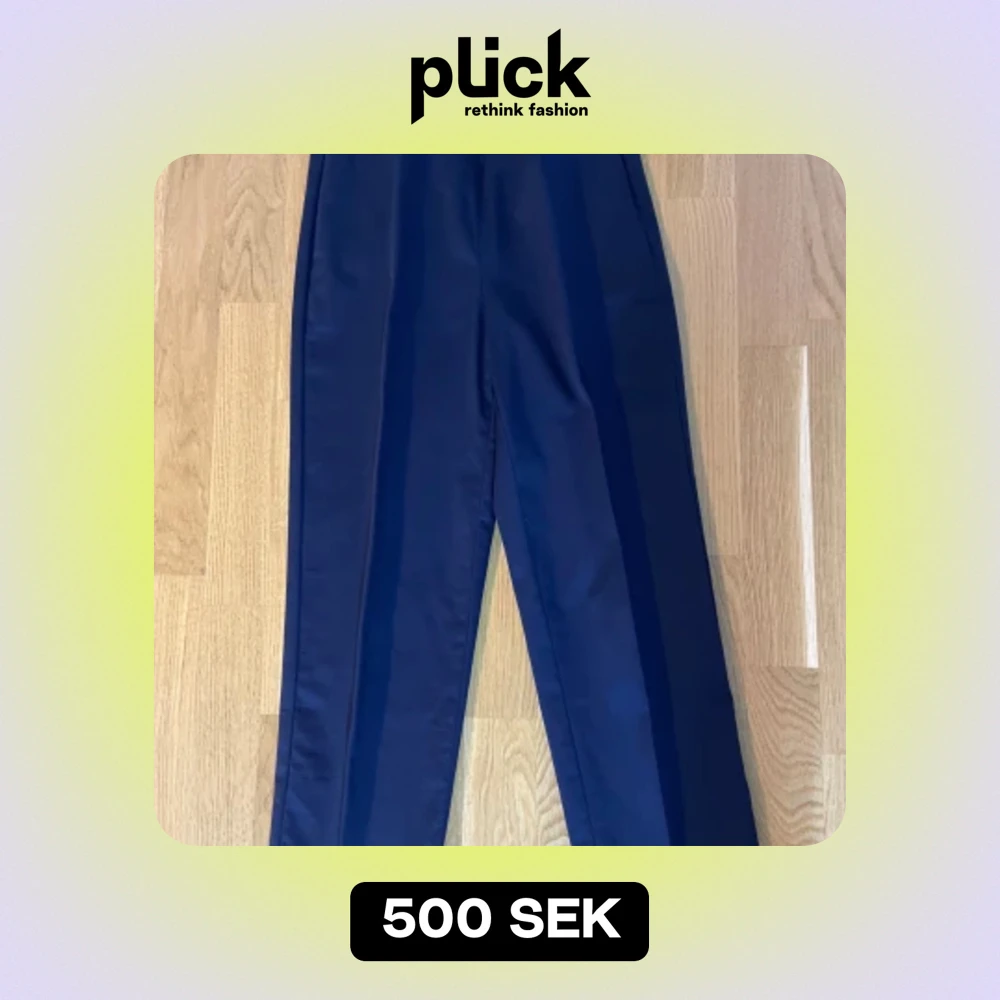 Säljer ett par eleganta mörkblå byxor från M&S Collection. De är i storlek EUR 34 och har en klassisk rak passform. Perfekta för både vardag och festliga tillfällen. Byxorna är i nyskick och har en stilren design som passar till det mesta.