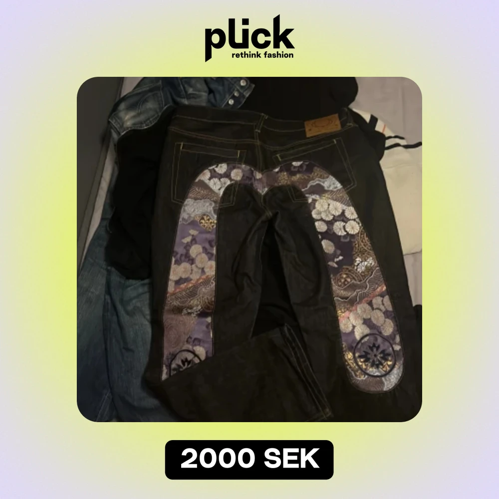 Extremt snygga evisu jeans, oklart ifall man kan köpa just dessa på affär längre. Dessa är riktigt sköna och snygga. Inga defekter! Köp!