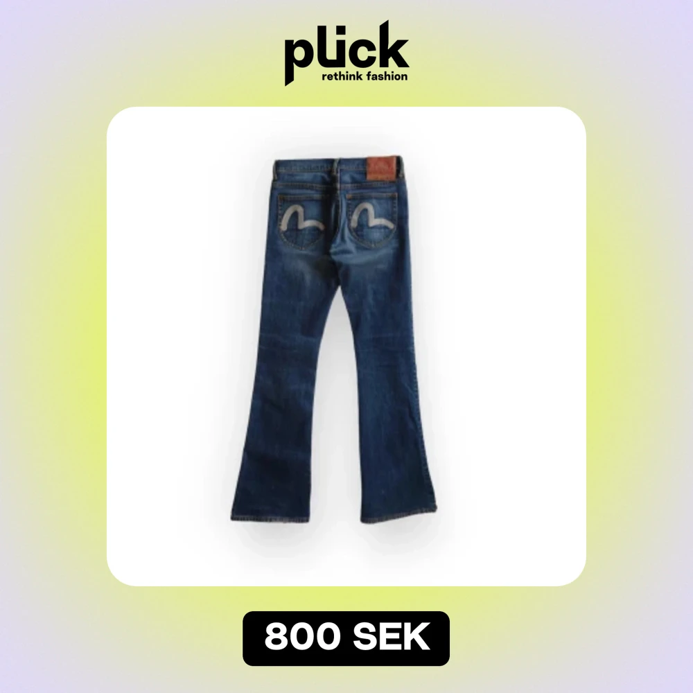 Mörka raka/utsvängda lågmidjade Evisu jeans. Storlek W28 motsvarar ungefär st 34 EU. Fråga gärna om fler bilder 💕